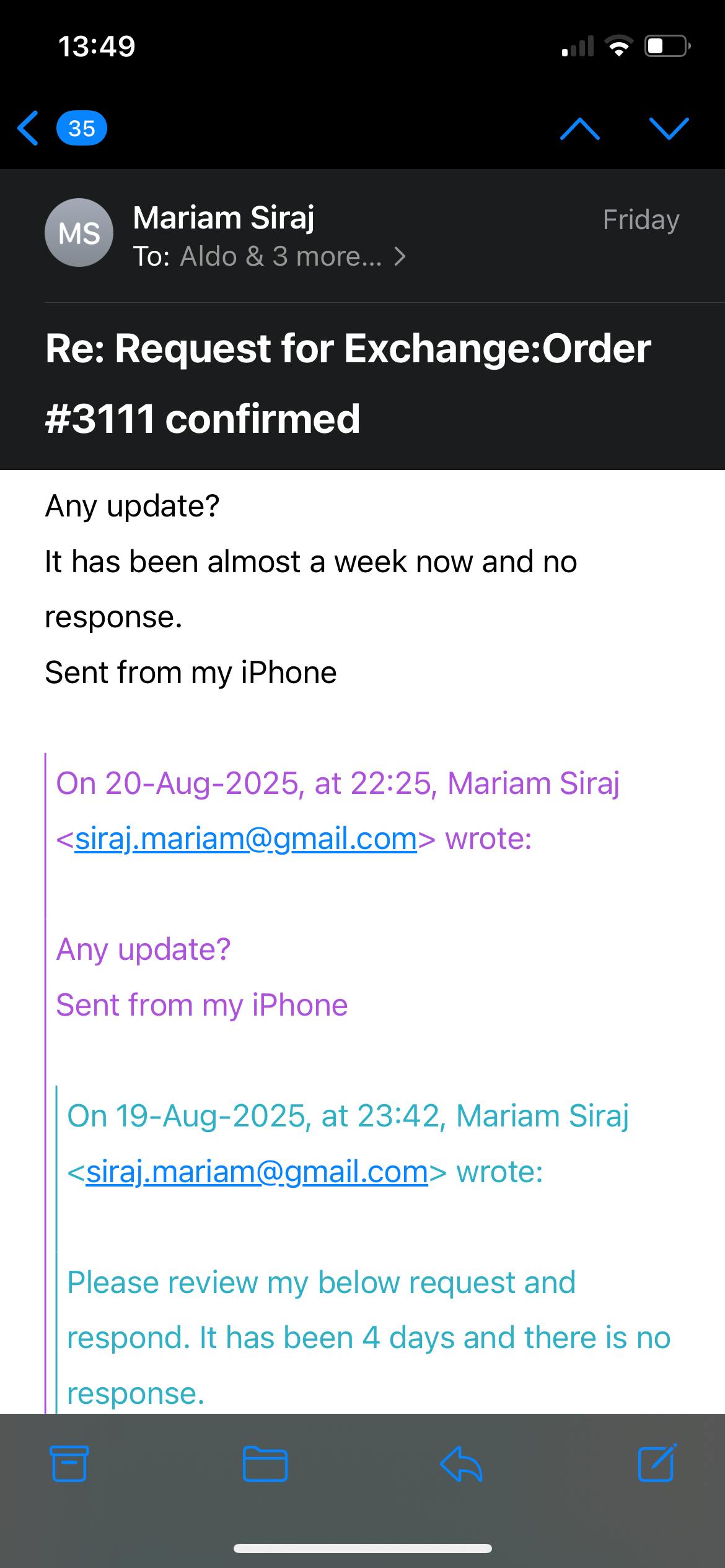 Horrible experience. I bought 6 shoes and this how you treat your customer . Horrible
